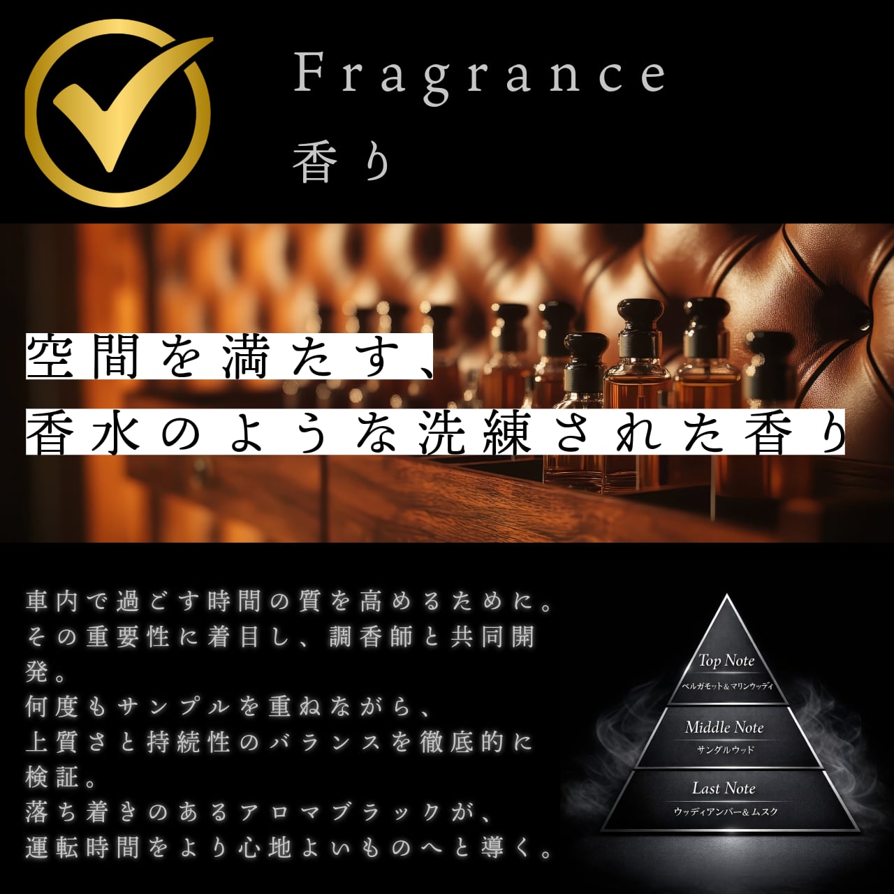 車内という空間の質を高めるために、調香師と幾度も試作を重ねました。
