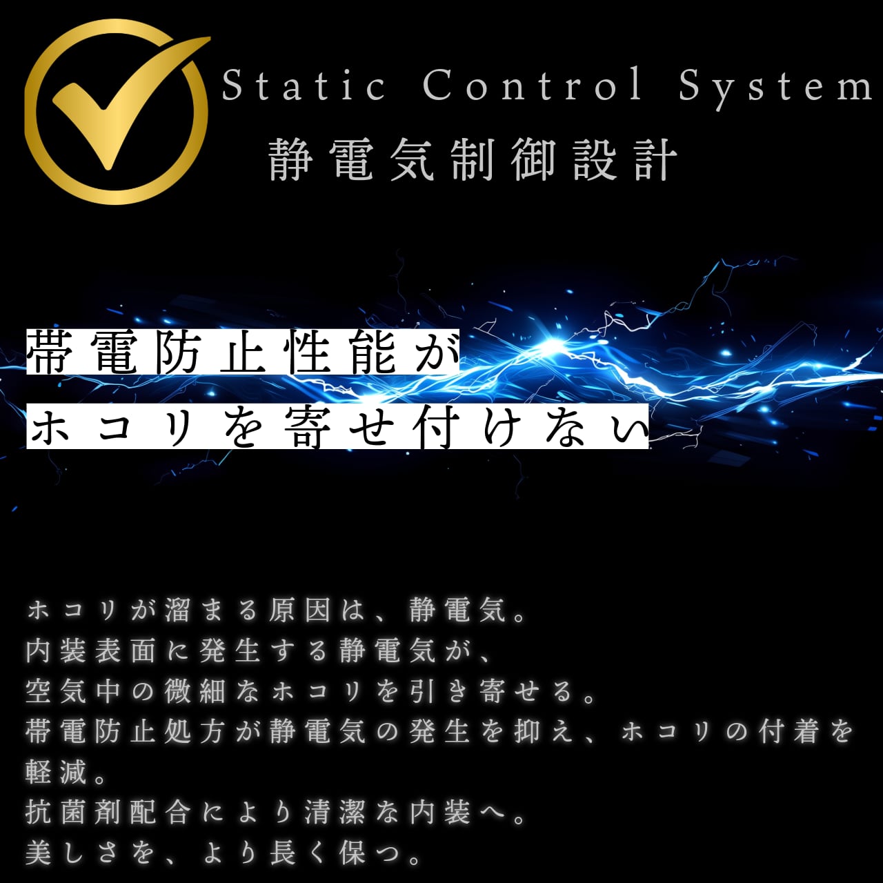 さらに帯電防止処方により、