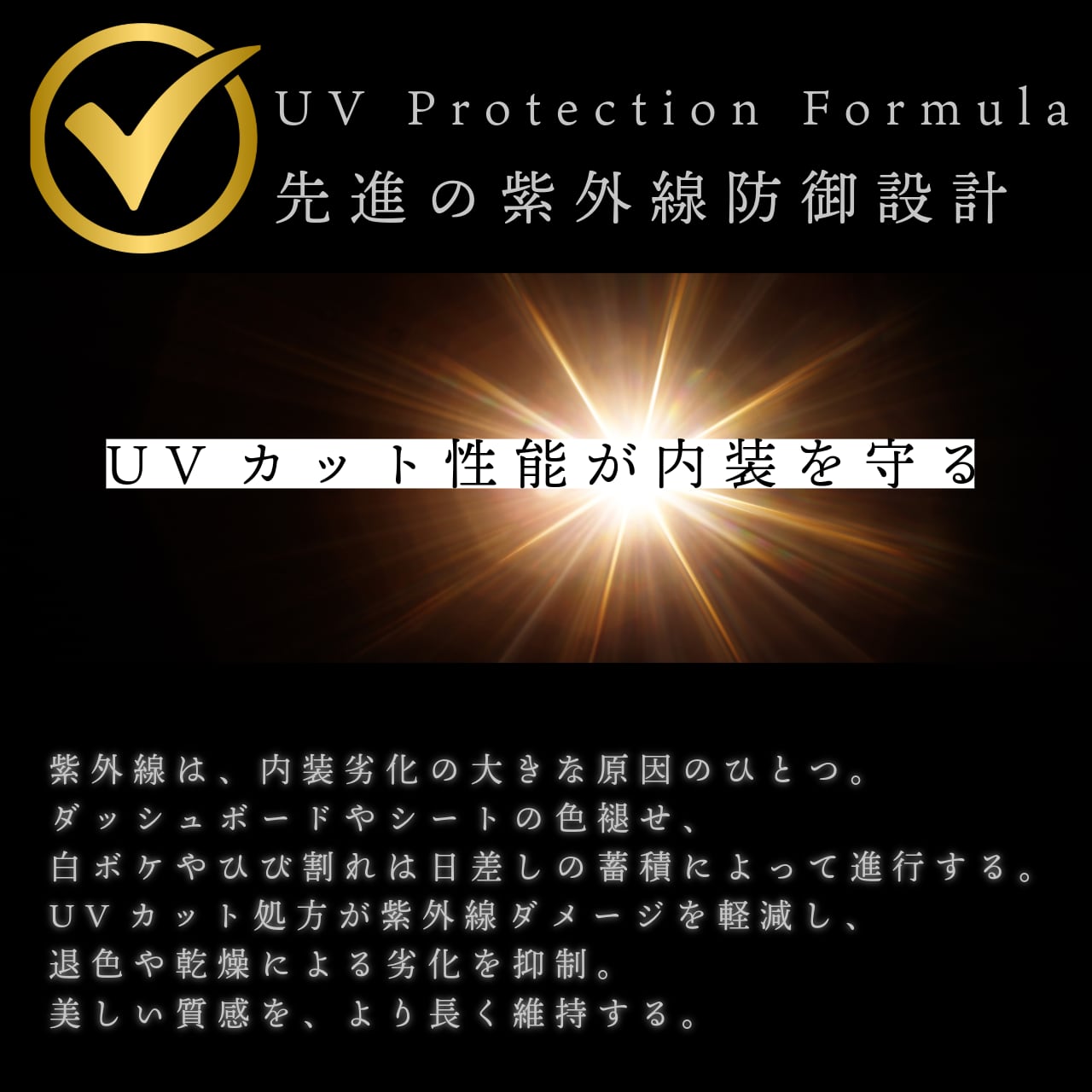 紫外線による退色や乾燥を抑制し、